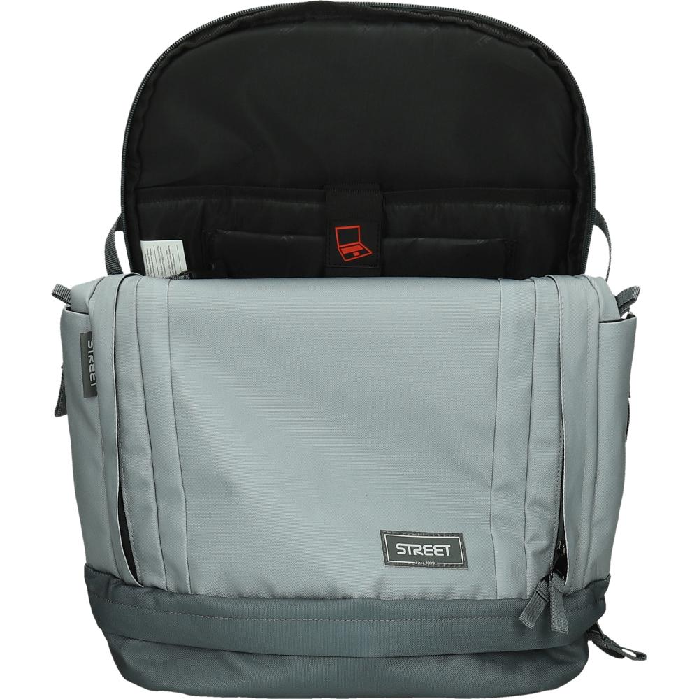 Nahrbtnik ima mehke, oblazinjene in nastavljive naramnice iz trpežnega materiala ter nastavljiv prsni pas za boljšo stabilnost pri nošenju. V notranjosti je organizator in poseben predal za prenosni računalnik. Oblazinjen hrbtni sistem zagotavlja večje udobje, velik in trpežen ročaj pa enostavno prenašanje. Ob straneh sta dva žepa za steklenici, na spodnjem delu pa je velik predal za čevlje. Nahrbtnik ima tudi nastavljive zaponke na naramnicah in odsevne dele za boljšo vidnost. Izdelan je iz edinstvenega materiala brez PVC, razen zaponk in odsevnih delov. Dimenzije nahrbtnika so približno 32 × 18 × 48 cm.