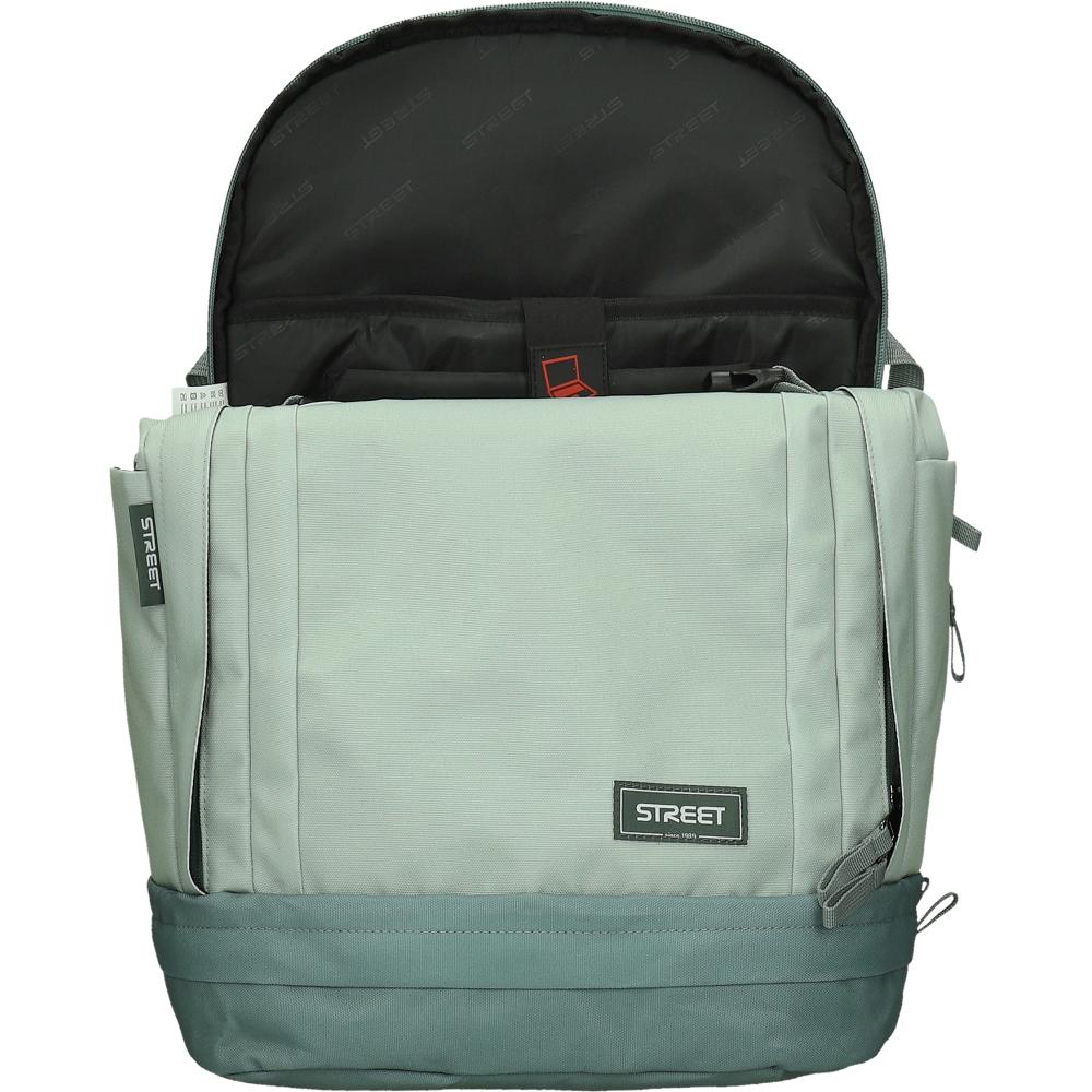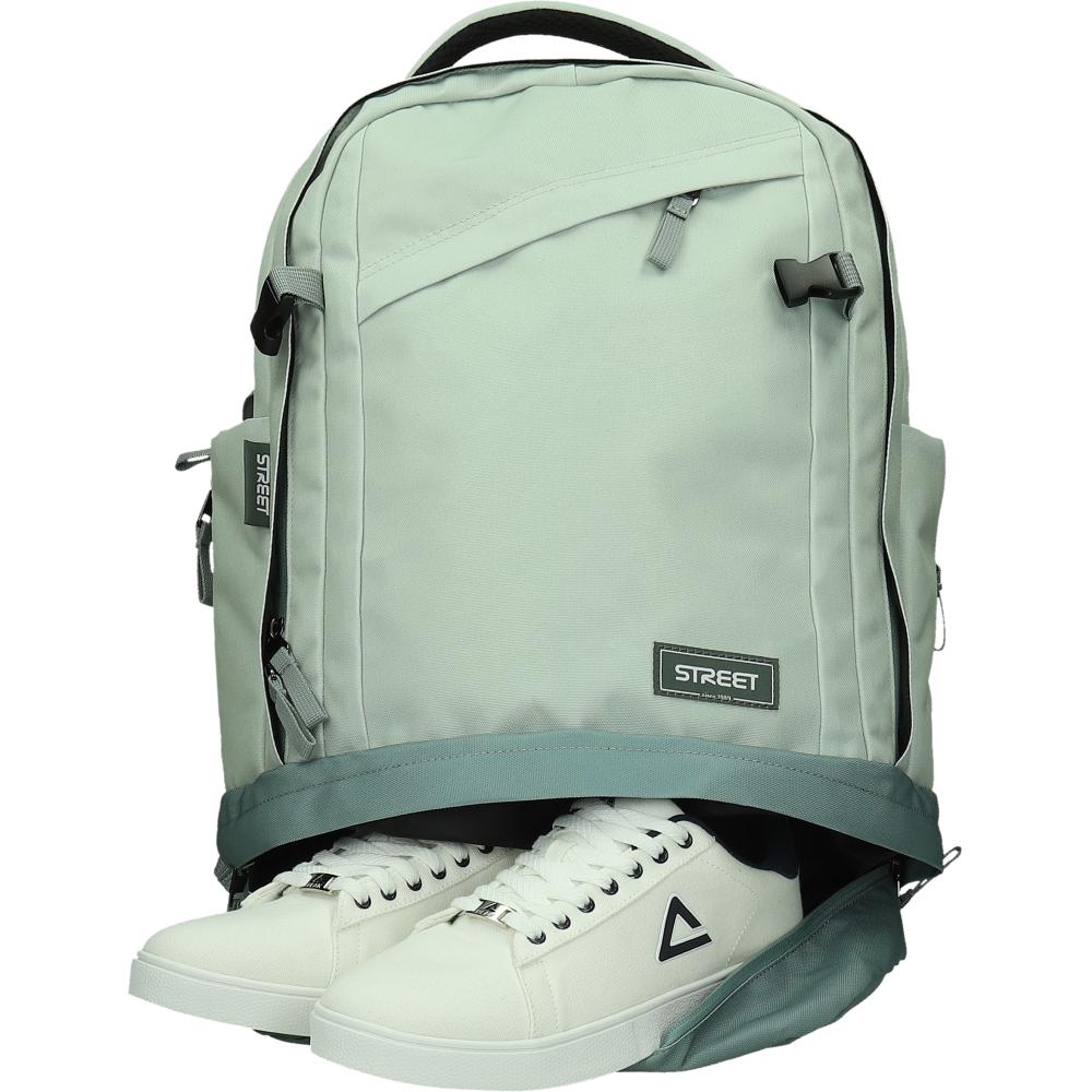 Nahrbtnik ima mehke, oblazinjene in nastavljive naramnice iz trpežnega materiala ter nastavljiv prsni pas za boljšo stabilnost pri nošenju. V notranjosti je organizator in poseben predal za prenosni računalnik. Oblazinjen hrbtni sistem zagotavlja večje udobje, velik in trpežen ročaj pa enostavno prenašanje. Ob straneh sta dva žepa za steklenici, na spodnjem delu pa je velik predal za čevlje. Nahrbtnik ima tudi nastavljive zaponke na naramnicah in odsevne dele za boljšo vidnost. Izdelan je iz edinstvenega materiala brez PVC, razen zaponk in odsevnih delov. Dimenzije nahrbtnika so približno 32 × 18 × 48 cm.