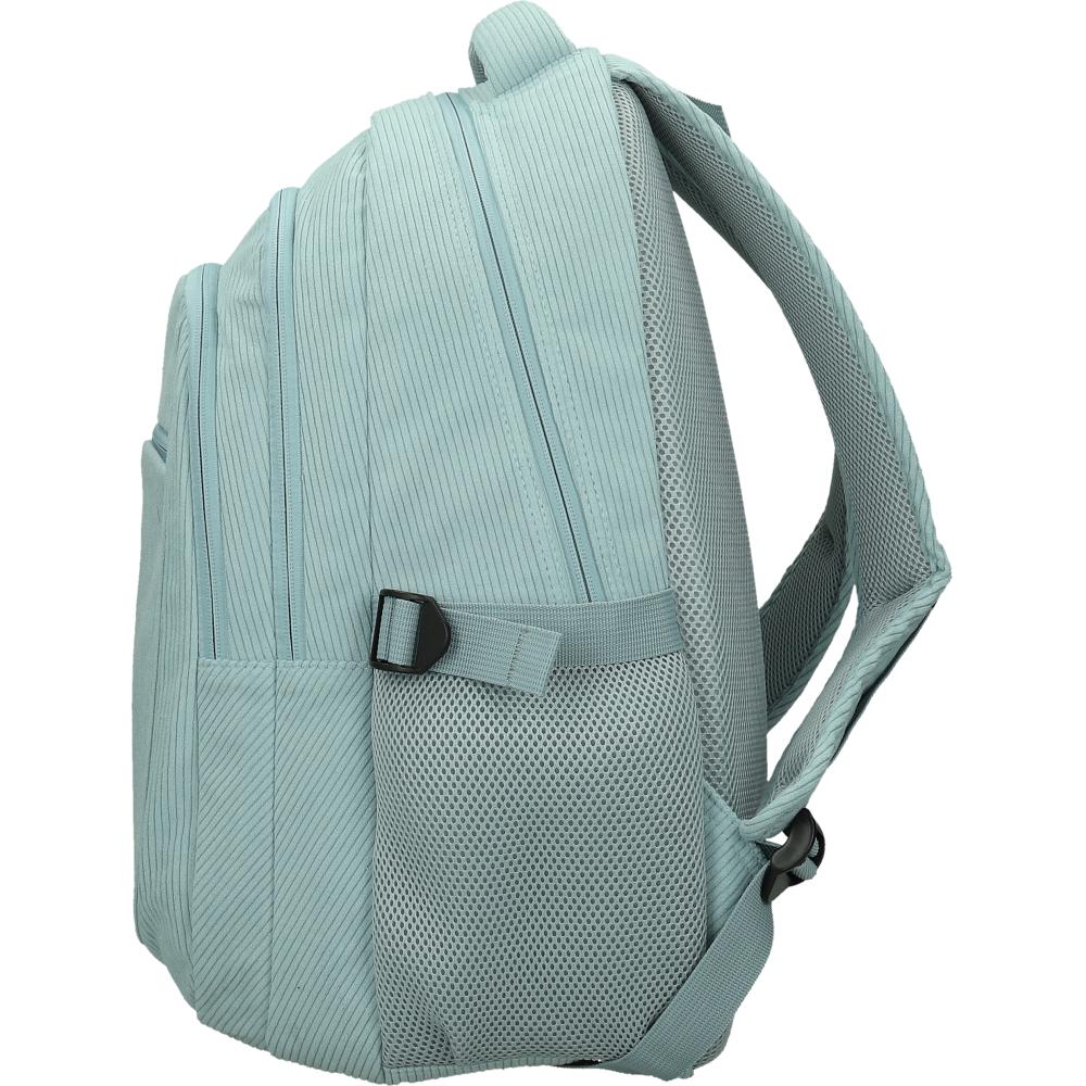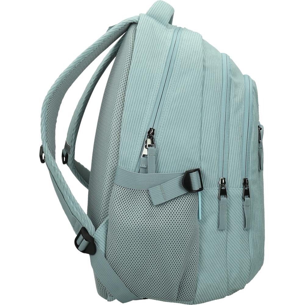 Nahrbtnik ima mehke in oblazinjene naramnice iz trpežnega materiala ter poseben predel za prenosni računalnik. Hrbtni sistem z mrežastim oblazinjenjem zagotavlja dober pretok zraka, nahrbtnik pa je opremljen s trpežnim in velikim ročajem. Na naramnicah in sprednjem delu so odsevni deli za večjo vidnost. Ob straneh sta dva žepa za steklenici, naramnice pa imajo nastavljivo zaponko. Material je 100 % brez PVC-ja. Dimenzije nahrbtnika so 34 × 22 × 45 cm.