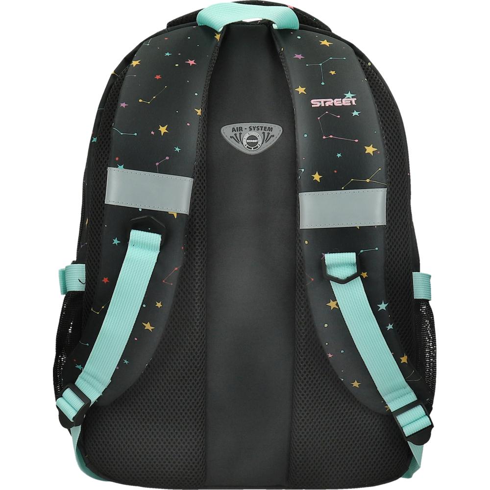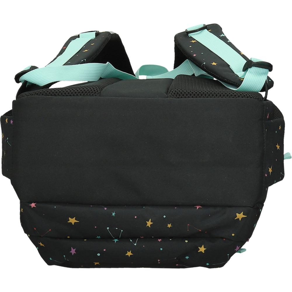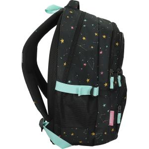 Nahrbtnik ima mehke in oblazinjene naramnice iz trpežnega materiala ter notranji organizator in predel za prenosni računalnik. Hrbtni sistem je opremljen z mrežastim oblazinjenjem za boljši pretok zraka, nahrbtnik pa ima trpežen in velik ročaj. Na naramnicah so odsevni deli za večjo vidnost, ob straneh sta dva žepa za steklenici, naramnice pa imajo nastavljivo zaponko. Material je 100 % brez PVC-ja. Dimenzije nahrbtnika so 34 × 15 × 45 cm.