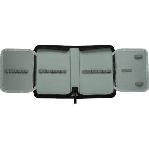 Peresnica je prazna, z eno zadrgo in dvema preklopoma. Dimenzije so 20 × 4,5 × 13 cm.