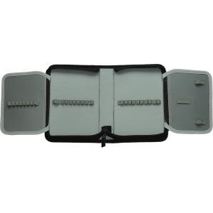 Peresnica je prazna, z eno zadrgo in dvema preklopoma. Dimenzije so 20 × 4,5 × 13 cm.